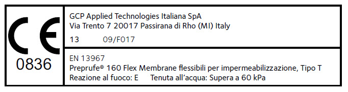 PREPRUFE 300R & 160R sono marchi registrati della GCP Applied Technologies Inc in USA o in altri stati. Questa lista di marchi registrati è stata composta usando le informazioni disponibili alla data di pubblicazione e potrebbero non riflettere accuratamente la proprietà o lo status di essi.