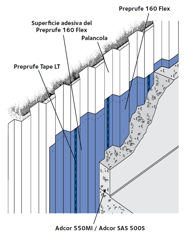 - PREPRUFE® 160 Flex – usato in verticale contro diaframmi permanenti dal profilo irregolare